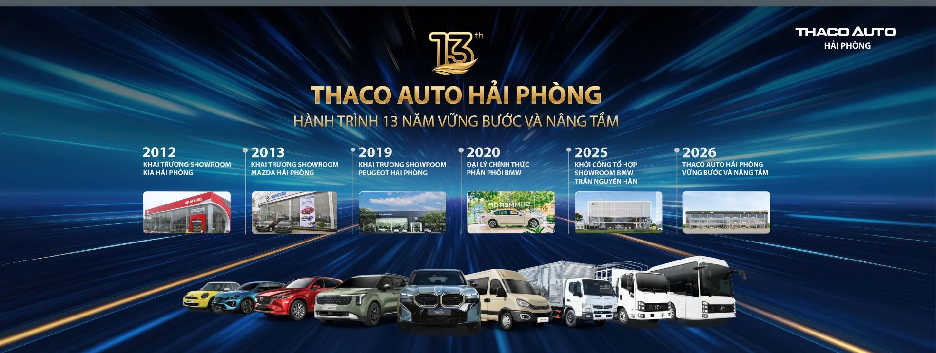 THACO AUTO Hải Phòng kinh doanh đầy đủ chủng loại xe du lịch đến từ các thương hiệu ô tô quốc tế (BMW, Kia, Mazda, Peugeot) và thương hiệu THACO Truck & Bus, đáp ứng nhu cầu sở hữu xe chuyên biệt đến từng khách hàng.